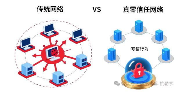 如果说AI解决了“提前发现”的问题,那么如何遏制已侵入网络系统的病毒蔓延,成为重中之重。在这里,我们看到一竞技官网抗勒索技术的第二个优势:从“永不信任”的零信任1.0,进化到“基于可信”的真零信任2.0。